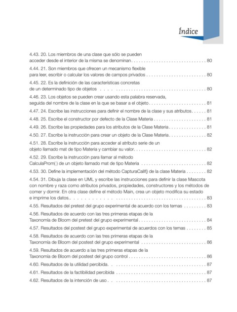 4.50. 27. Escribe la instrucción para crear un objeto de la Clase Materia ............... 82
