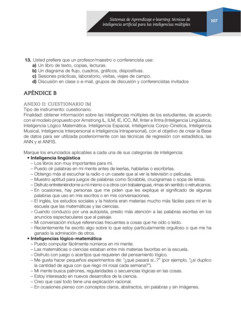 Page 108 - Sistemas de aprendizaje e-learning: técnicas de inteligencia artificial para las inteligencias múltiples