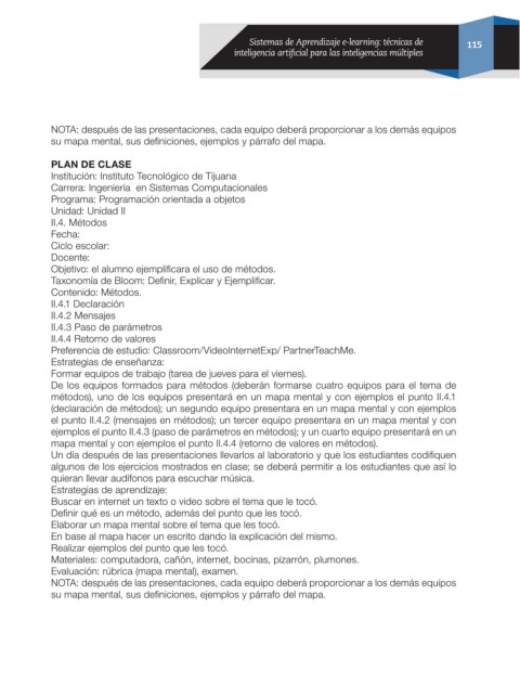 el punto II.4.2 (mensajes en métodos); un tercer equipo presentara en un mapa mental y con