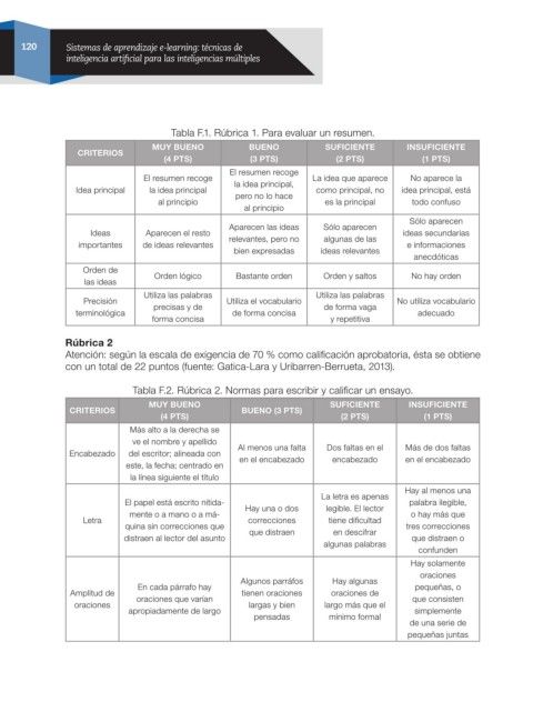 Tabla F.2. Rúbrica 2. Normas para escribir y calificar un ensayo.