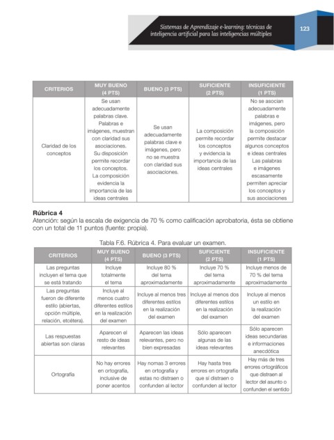 Tabla F.6. Rúbrica 4. Para evaluar un examen.