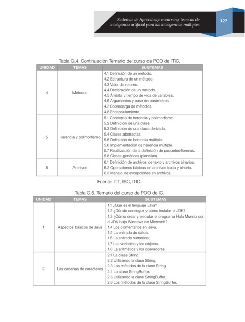 Tabla G.4. Continuación Temario del curso de POO de ITIC.