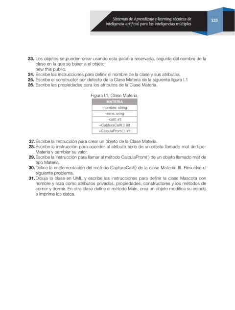 25. Escribe el constructor por defecto de la Clase Materia de la siguiente figura I.1