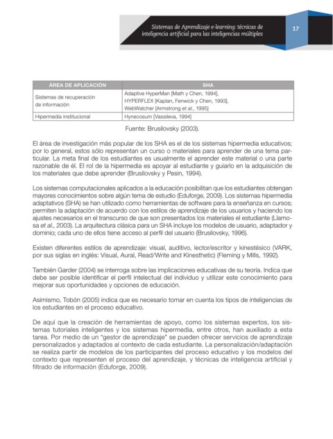 Page 18 - Sistemas de aprendizaje e-learning: técnicas de inteligencia artificial para las inteligencias múltiples