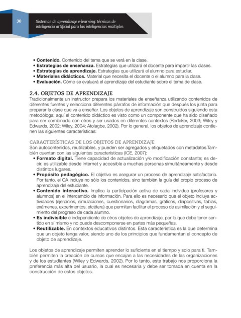 Edwards, 2002; Wiley, 2004; Atolagbe, 2002). Por lo general, los objetos de aprendizaje contie-