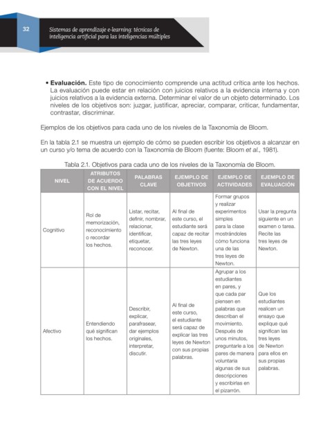 Tabla 2.1. Objetivos para cada uno de los niveles de la Taxonomía de Bloom.