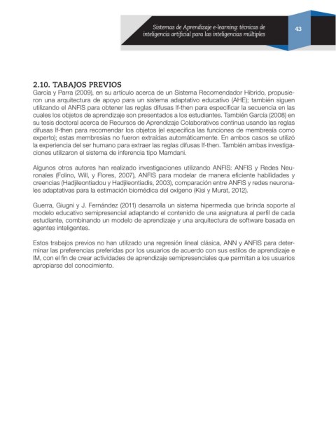 Page 44 - Sistemas de aprendizaje e-learning: técnicas de inteligencia artificial para las inteligencias múltiples