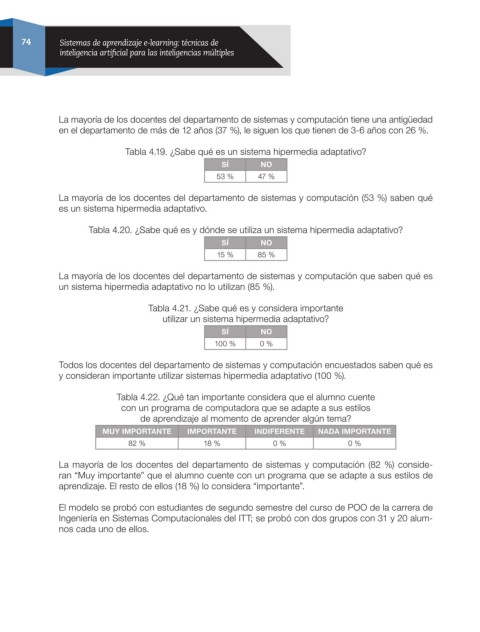 y consideran importante utilizar sistemas hipermedia adaptativo (100 %).