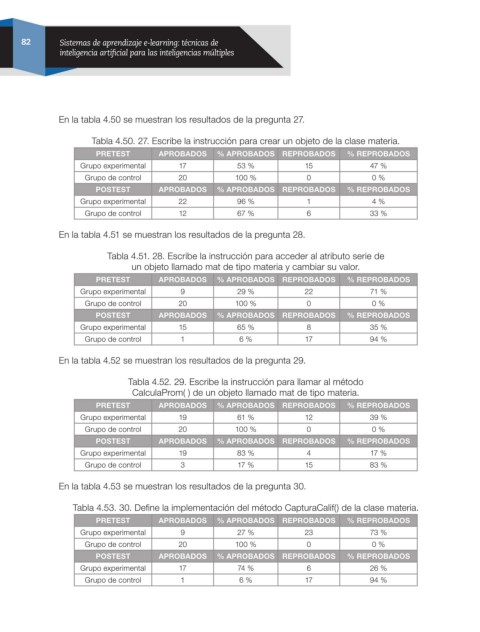 Tabla 4.52. 29. Escribe la instrucción para llamar al método