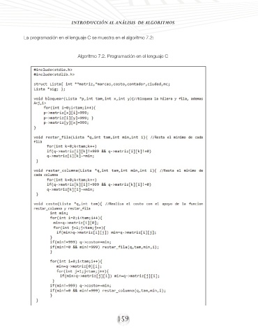 INTRODUCCIÓN AL ANÁLISIS DE ALGORITMOS La programación en el lenguaje C se muestra en el algoritmo 7.2: Algoritmo 7.2. Programación en el lenguaje C 159