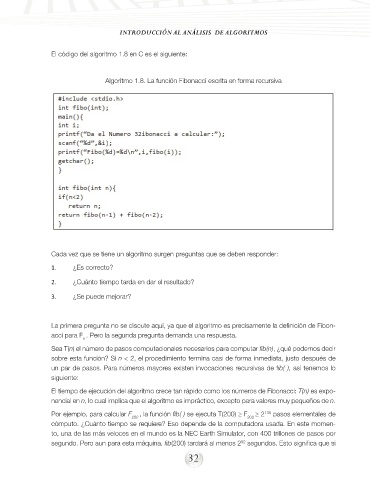 Algoritmo 1.8. La función Fibonacci escrita en forma recursiva