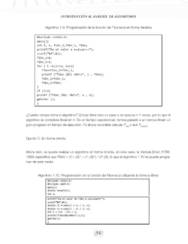 1856) especifica que Fib(n) = ((1+√5) – (1-√5) ) / (2 √5), lo que el algoritmo 1.10 se puede progra-