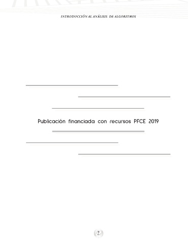 INTRODUCCIÓN AL ANÁLISIS DE ALGORITMOS Publicación financiada con recursos PFce 2019 2