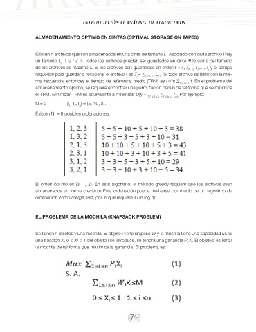 un tamaño L, 1 ≤ i ≤ n. Todos los archivos pueden ser guardados en cinta iff la suma del tamaño