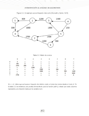 Figura 3.5. Un ejemplo para el trayecto más corto (Horowitz y Sahni, 1978)