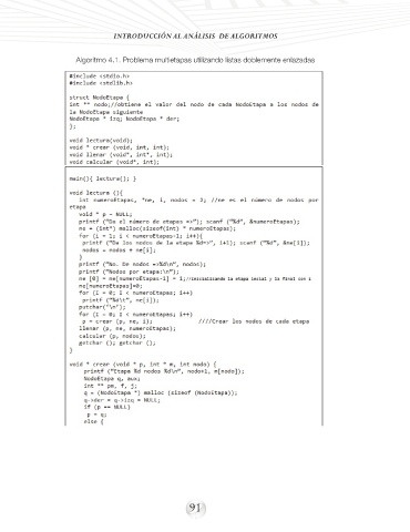 INTRODUCCIÓN AL ANÁLISIS DE ALGORITMOS Algoritmo 4.1. Problema multietapas utilizando listas doblemente enlazadas 91